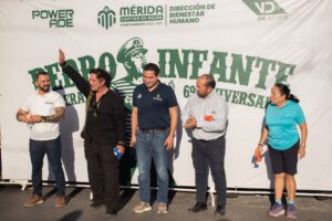 La presentación de la carrera estuvo encabezada por Carlos Sauri Duch, rector de la Universidad Modelo; Carlos Elisio Sauri Quintal, director general de la institución universitaria; Gerardo Torres Herrera, coordinador deportivo; Iván Alberto Herrera Rosiles y Jesús Efrén Pérez Ballote, subdirector de Deportes y Bienestar Humano del Ayuntamiento de Mérida; así como Alejandro Medina Alvarado, director de Vinculación de Unidades Deportivas del Gobierno del Estado. /Alicia Martínez)