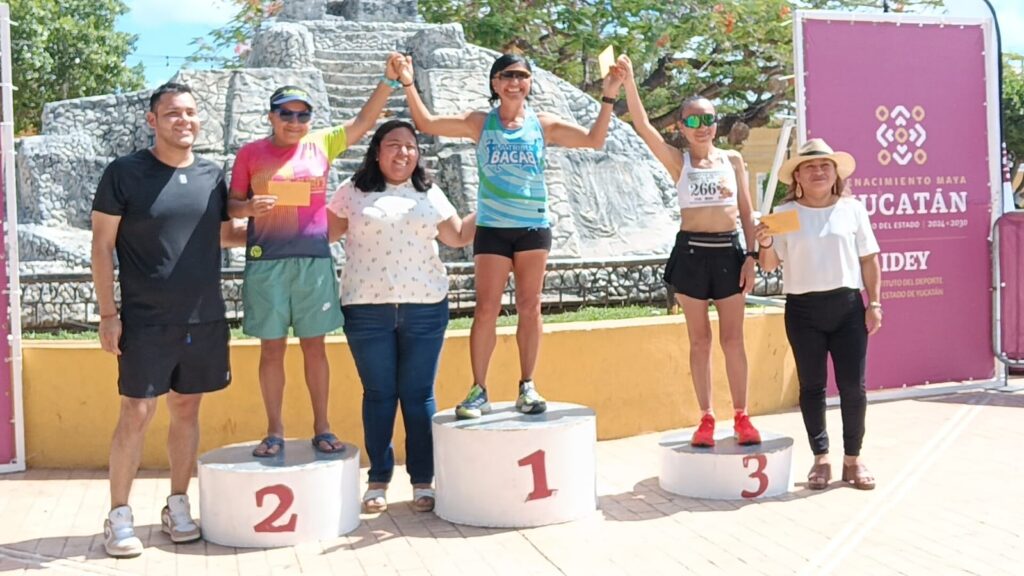 • Máster femenil: 1ª Yanet Vallejos (1:41:32), 2ª Rosalba Mex Mex (1:45:01), 3ª Esmeralda Vicinais Chablé (1:58:42).