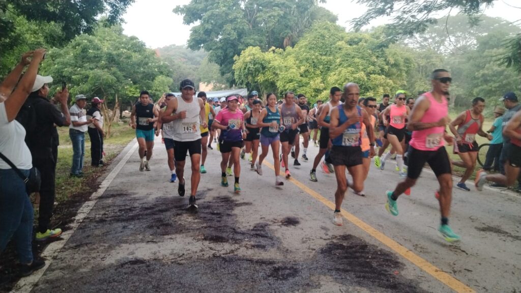 Mérida, Yucatán | 10 de agosto de 2025.- La Carrera Kinich Ahau, en su formato de 22 kilómetros, se realizó este domingo con salida en la entrada a la zona arqueológica de Mayapán y meta en la plaza principal de Acanceh. Durante la ceremonia de premiación fueron reconocidos ex corredores que dieron lustre al atletismo de ruta, organizando en el pasado competencias similares. El evento fue coordinado por Marcos Pech Uh, promotor deportivo del club Venados de Acanceh y organizador de esta edición.