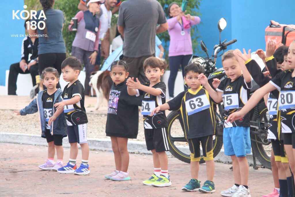 Las medallas de chocolate para los pequeños, la imagen del gato amarillo – la mascota favorita de Isabela – presente en las medallas y en algunas playeras, y la familia completa reunida – tía, abuelita, primos -fueron detalles que dieron calidez al evento.