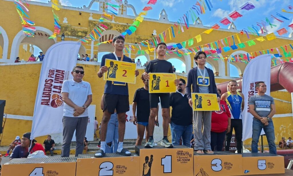 Izamal, Yucatán | 21 de diciembre de 2025.- Izamal fue el escenario perfecto para recibir la primera edición de la Carrera Gran Tributo a los Grandes Atletas del Sureste, donde cerca de 400 corredores recorrieron los 10 y 5 km en una jornada dedicada a honrar a las glorias del atletismo. El comité organizador, formado por veteranos que dejaron huella en las pistas del sureste, apostó con todo a este sueño: una bolsa de premiación hasta el quinto lugar, dos metas volantes, reconocimientos especiales a 30 corredores de todas las décadas. Además, contaron con la presencia del legendario Dionicio Cerón, embajador de lujo, quien convivió con los corredores y obtuvo el segundo lugar en su categoría.