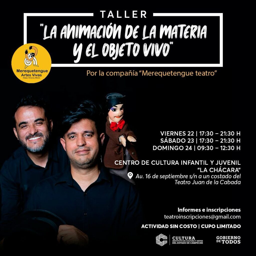 San Francisco, Campeche | 14 de agosto de 2025.- Del 22 al 24 de agosto, Campeche será escenario de una experiencia artística única con el taller “La animación de la materia y el objeto vivo”, un espacio donde los participantes descubrirán cómo dotar de movimiento, expresión y narrativa a objetos y marionetas.