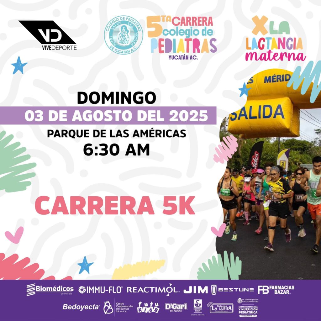 Mérida, Yucatán, 8 de julio, 2025.— En el marco de la Semana Mundial de la Lactancia Materna, el Colegio de Pediatras de Yucatán A.C. anunció la realización de su 5ta Carrera con causa, que se llevará a cabo el próximo domingo 3 de agosto en el Parque de las Américas.