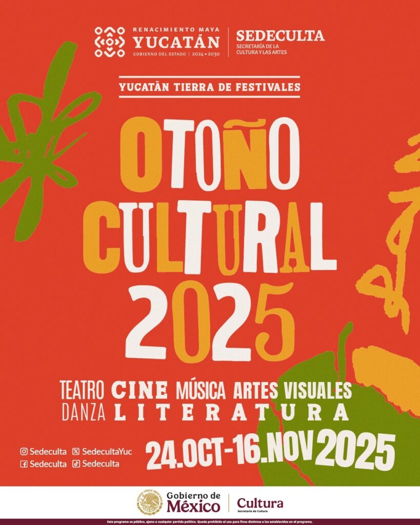Mérida, Yucatán | 22 de octubre de 2025.- Una de las temporadas más esperadas por los yucatecos y residentes en el estado es, sin duda, el Otoño Cultural: más de tres semanas en las que la música, el teatro, la danza, la literatura y las artes visuales desbordan la capital yucateca y otros puntos de la entidad, con el objetivo de acercar de forma gratuita el arte a personas de todas las edades.