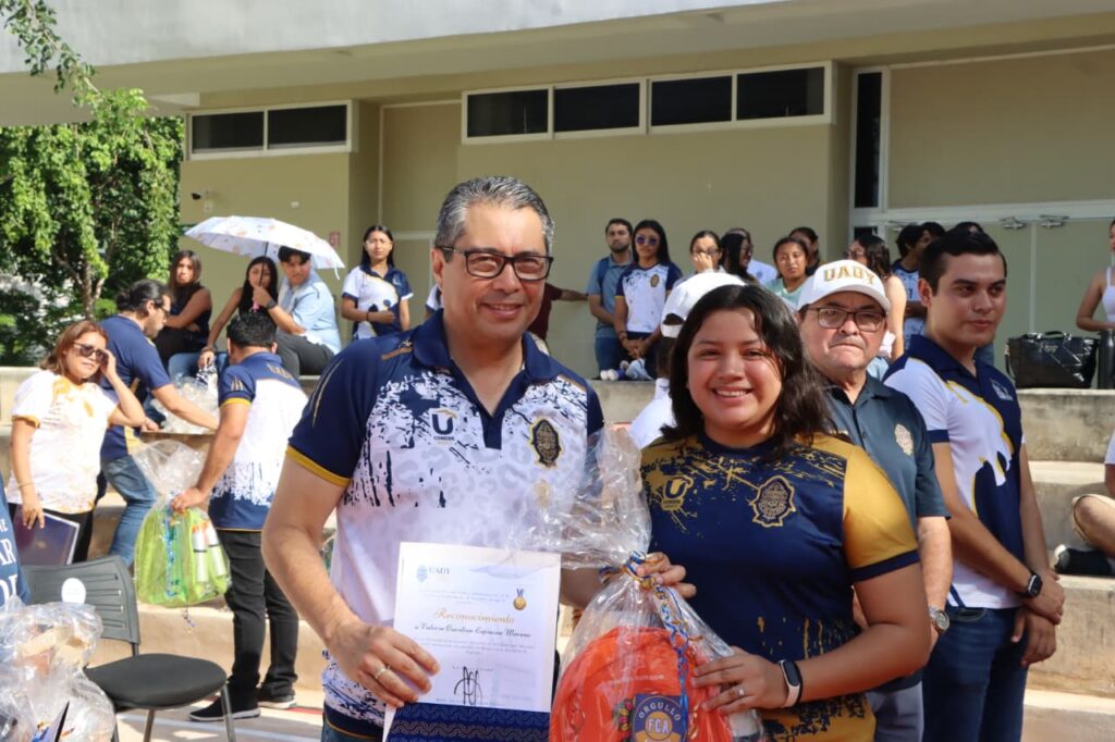 En el evento también se reconoció a 62 estudiantes de la FECA que participaron en la Universiada Nacional 2025, quienes contribuyeron a la histórica cosecha de medallas para la UADY. Entre ellos se encuentran Yesenia Abigail Zúñiga Ucán, medalla de oro en Powerlifting; Alan David Gutiérrez Palomo, medalla de plata en esgrima; y Lourdes Angélica León Cervantes, ganadora de tres medallas de bronce en levantamiento de pesas, entre otros atletas destacados.